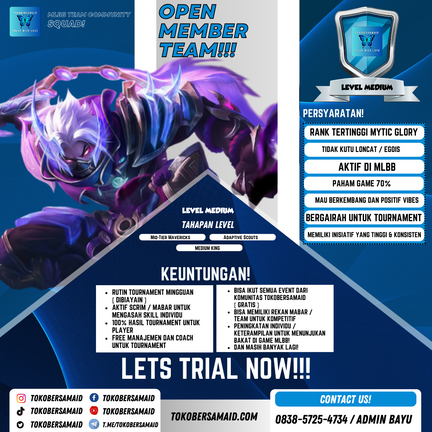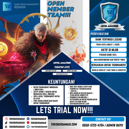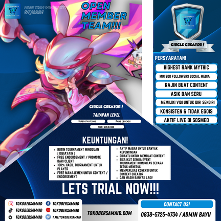 Kami mengundang Anda untuk menjadi bagian dari perjalanan kami dalam dunia esport yang penuh gairah dan tantangan. Kami saat ini membuka kesempatan bagi individu yang berbakat dan bersemangat untuk bergabung dengan tim kami yang kompetitif dan berorientasi pada pertumbuhan.